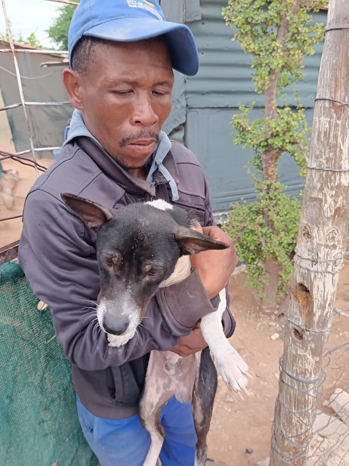 Blessie is a three year old male dog and well loved by his owner, Francois. Francois and his wife work at the local Cape Dry factory. Blessie had a skin problem which AML have treated, Francois would like him sterilised.