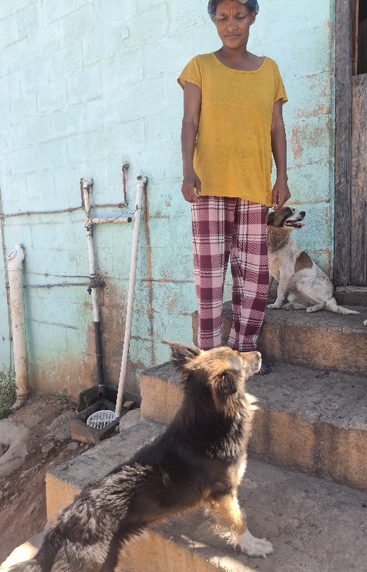 Bruno is one of three dogs living at Frances Plaatjies house. He is with his mother and brother who are all on the list for sterilisation. The dogs are in good condition despite the poverty in the household.