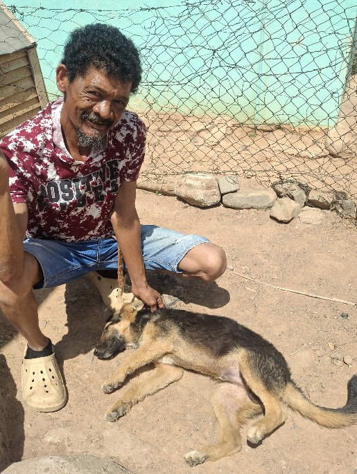 Eben is a pensioner living on his own in a small one roomed house. Flekkie looks like a GSD, but, although an adult dog, he is very small. His condition is not too bad. He has a sweet nature and Eben would like him sterilised.