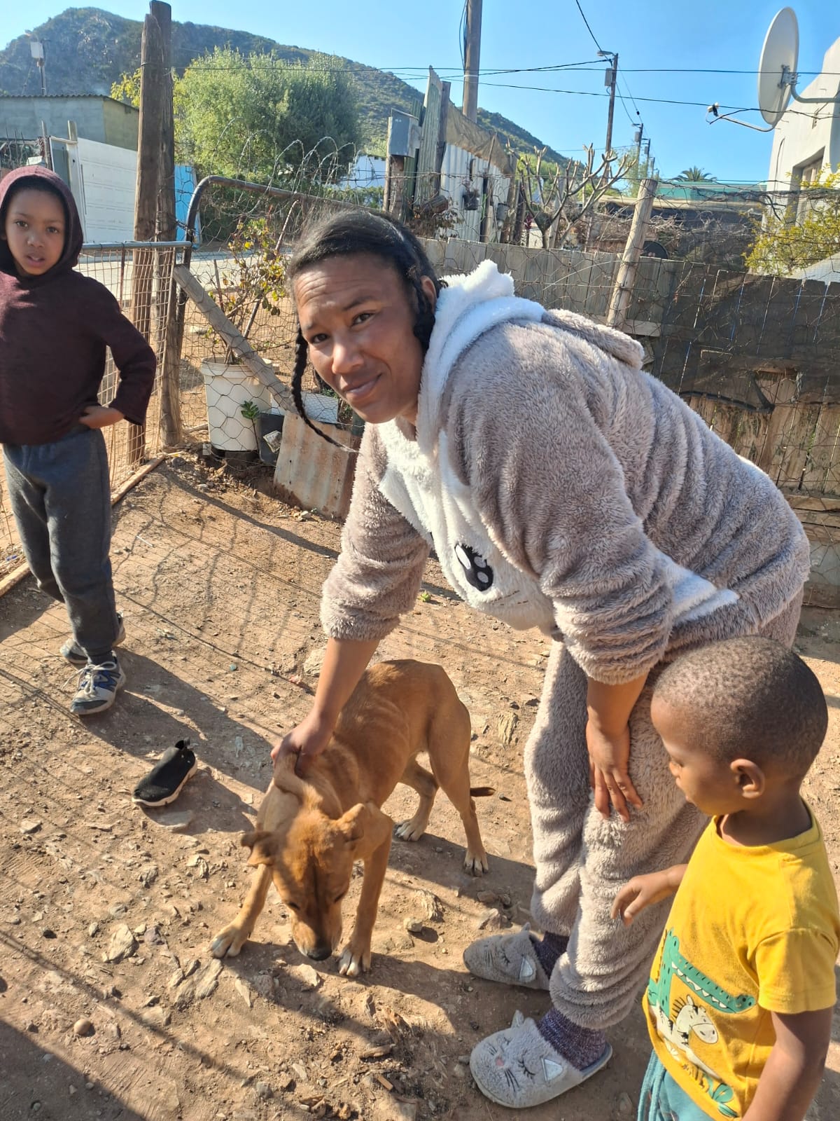 Nadia works as a cleaner at Capedry factory. Her boyfriend is currently without a job. They have a teenage son. Inka has had pups so is underweight, but the family would like to sterilise her, in which case her body weight will regain.