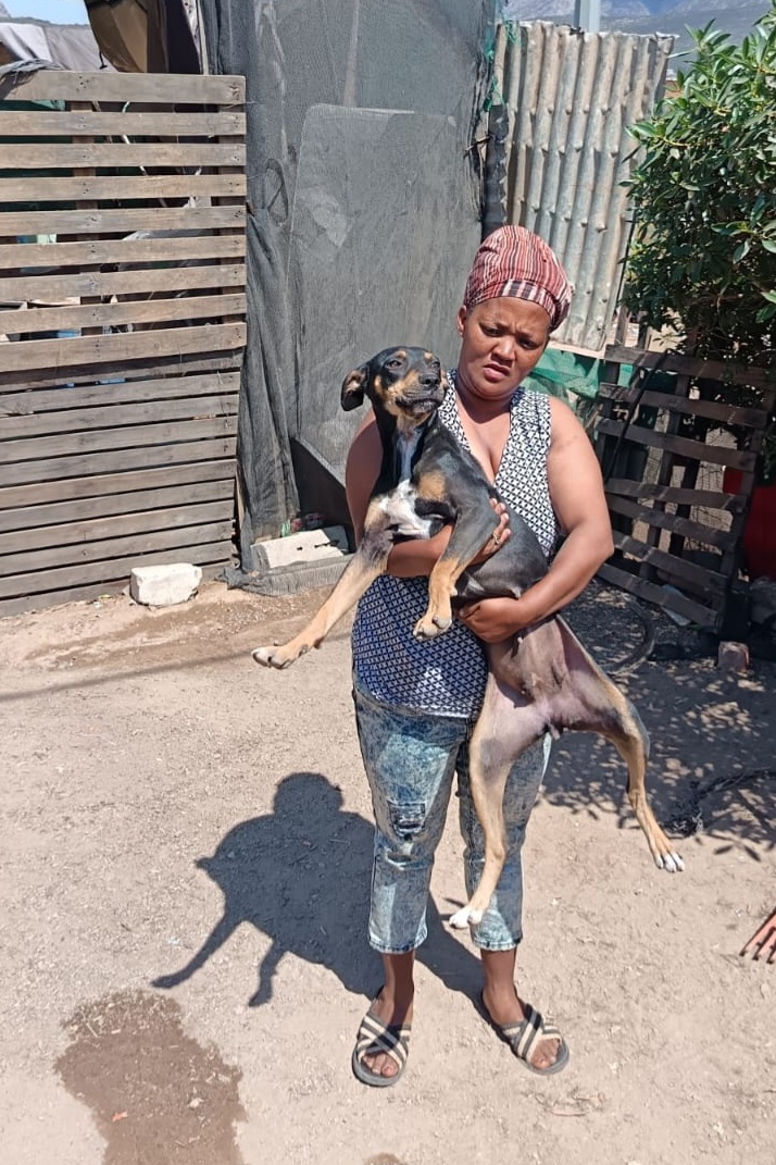 Leila lives in a tiny brick house with her owners, Hannelie and her husband, Karel and their 4 school going children. Hannelie works at the local school as a cleaner and her husband is a brick layer.
