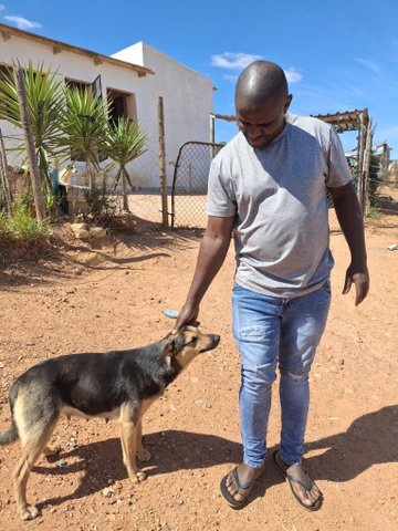 Daniel works as a petrol jockey at the filling station in Ashton. His wife is a cleaner at the school in Zolani. They have two school going children. They have three dogs. The one female dog is already sterilised. Losgon had a litter of pups. The family do not want more.