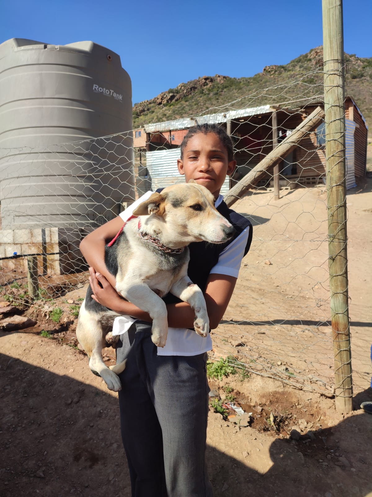 Maski is one of three dogs owned by the Willemse family. Katerina works as a dishwasher, and her husband as a farm worker. They live in a wendy house with their parents who are pensioners. We have strongly advised them NOT to get another pet.