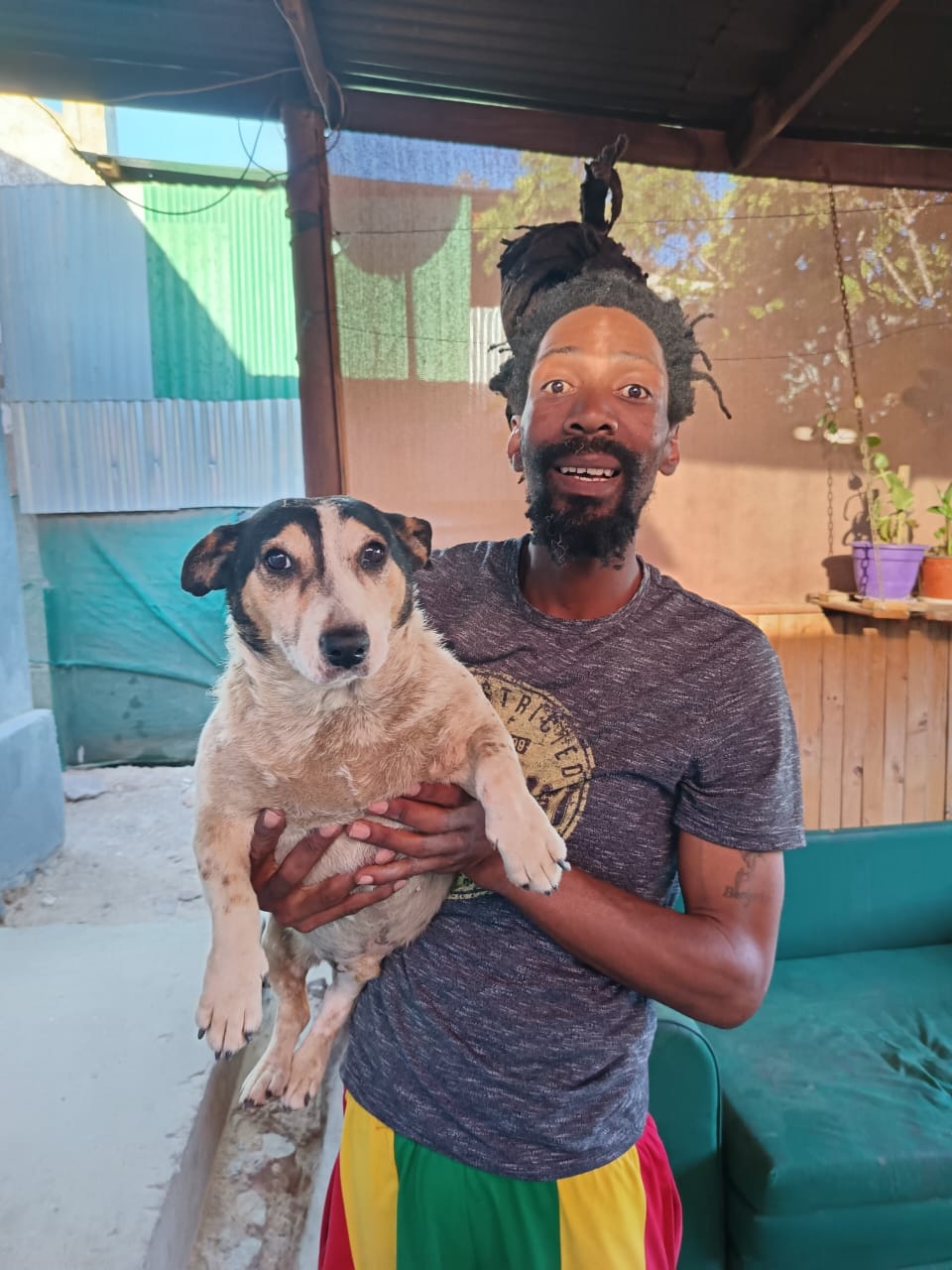Max is a chunky, slightly overweight JR cross whose LOVES people. His owner, Manuel sells herbs on the road side. Manuel lives with his sister and her husband.
