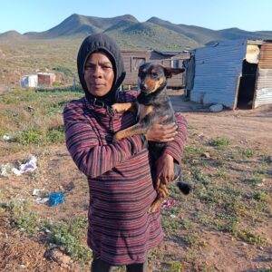 Elizabeth lives in a little tin shack in the informal settlement "Mountain View", with her boyfriend and 2 year old child. Her husband works at the municipal dump.