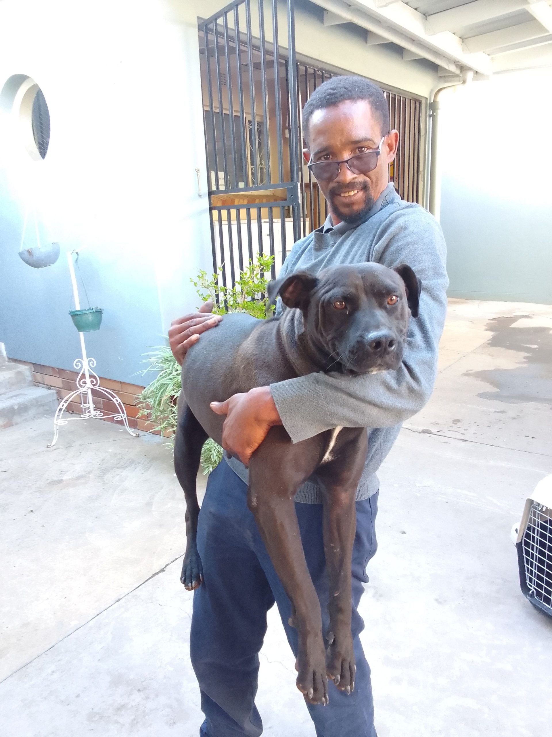 Meka is the most cuddly and busy Staffie X girl whose owner is a farm worker.