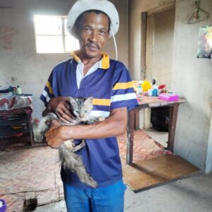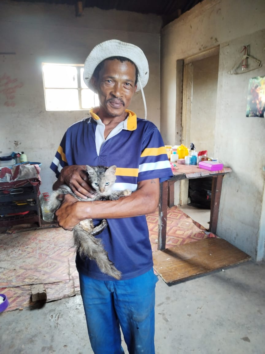 Pielletjies owner is jobless and he and his wife live in a shell of a burnt down house. They adore little Pielletjies and cook meat for her every night on a fire.