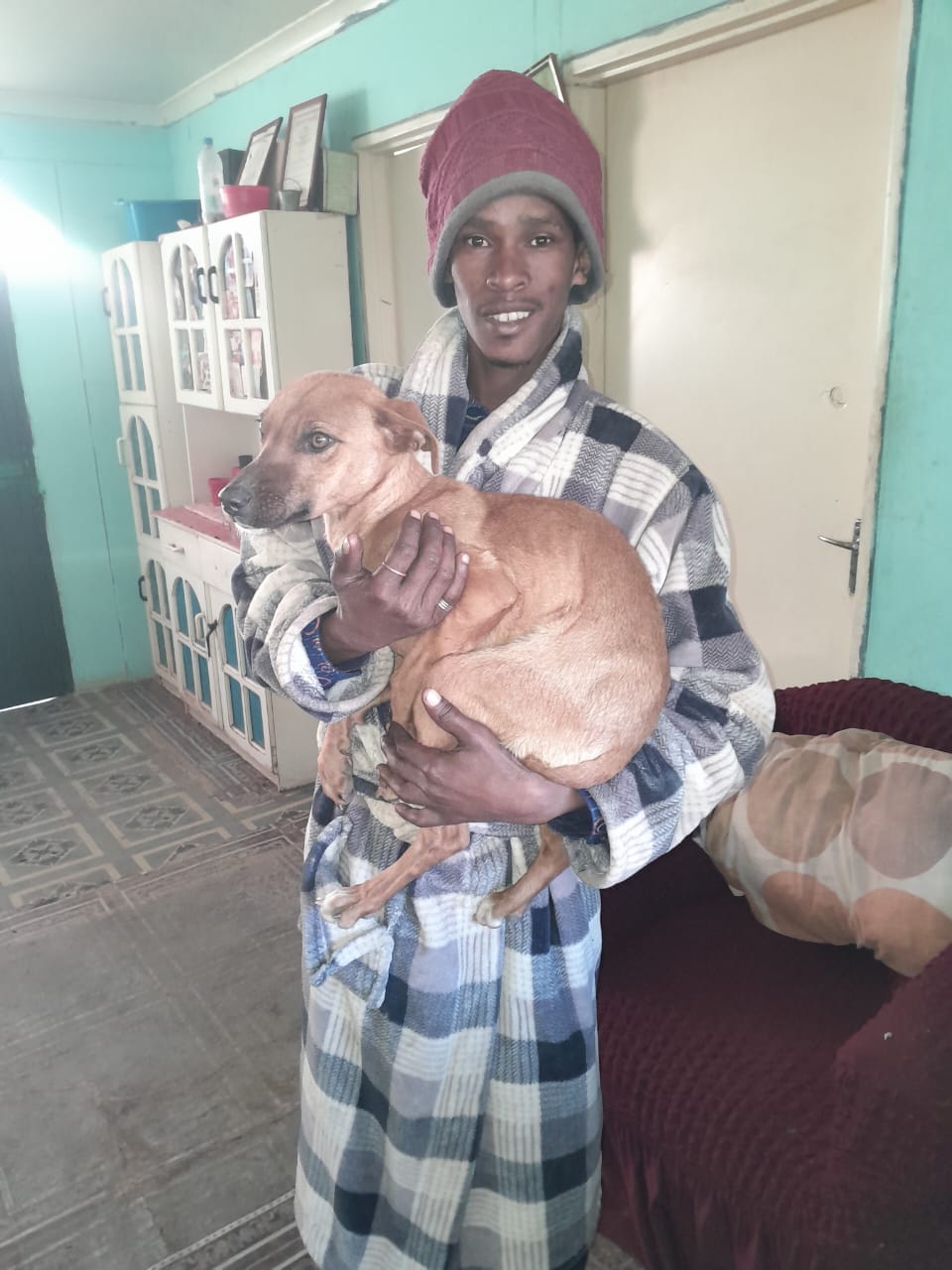 Rambo is a Africanis dog whose young owner is unemployed. Rambo is in good health with his vaccinations up to date. He has started trying to jump the fence to look for females in heat. His owner asked us for help with the cost of sterilization as he does not want Rambo to get run over or into a fight and bitten.