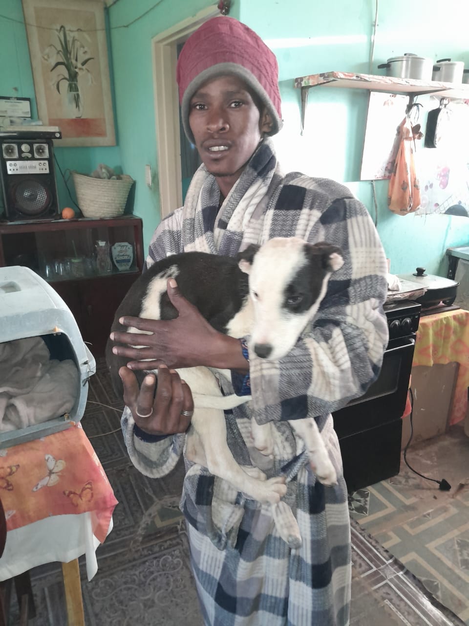Koos is unemployed and has 2 dogs, Rambo and Tessa. We met him at our community clinic where he asked us for help in sterilizing his dogs. He does not want Tessa to have puppies and as she lives with a male dog( Rambo), we stepped in to assist the family.