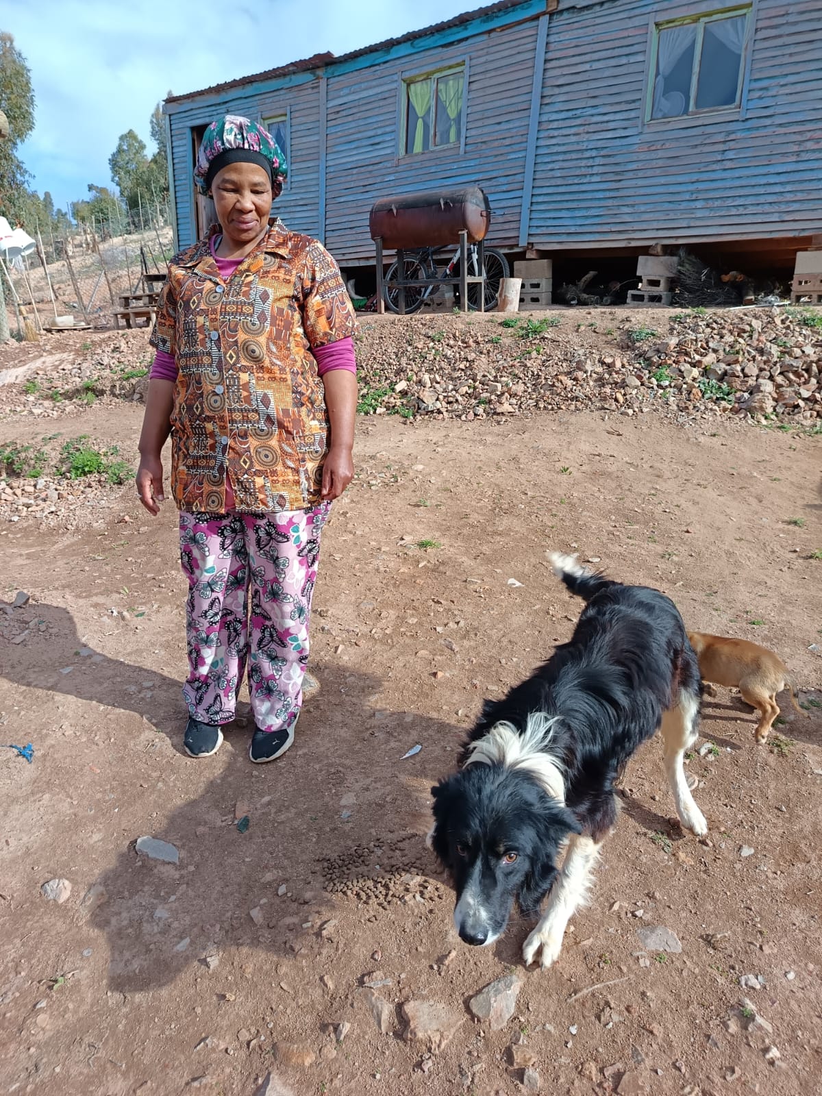 Jolanda lives on her own in a tin shack. She is a pensioner. Wiesit had alitter of pups and Jolanda approached AML for help with the sterilisation of her dog. SHe has kept one puppy, which will be sterilised when old enough.
