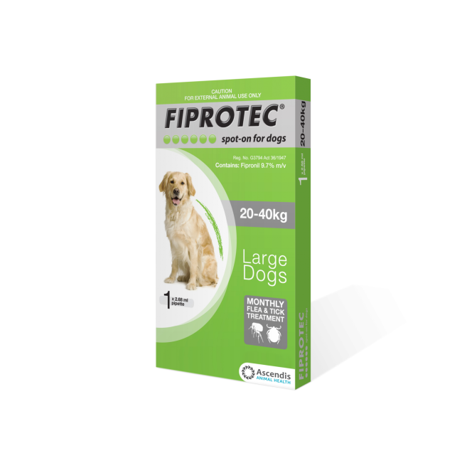 Fiprotec Dog Tick and Flea Treatments 20kg -40kg x 10 pipettes (Green)
